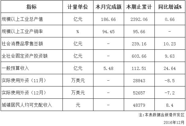 2016年12月份主要經濟指標完成情況