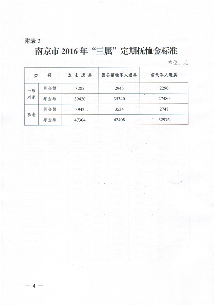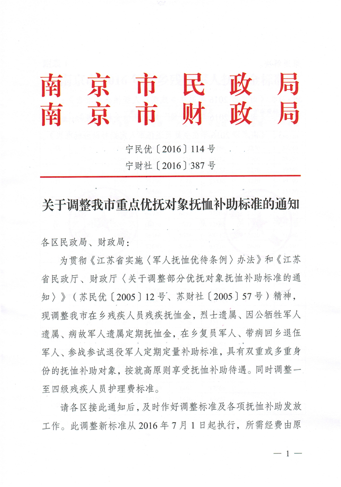 關于調整南京市重點優撫對象撫恤補助標準的通知