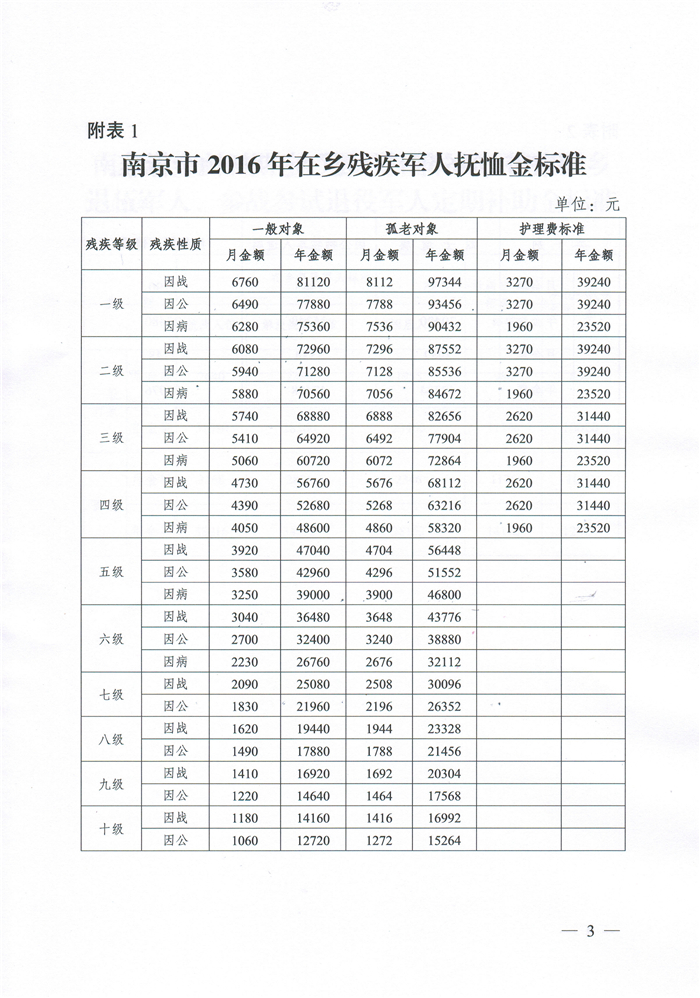 信息名稱:    關于調整南京市重點優撫對象撫恤補助標準的通知