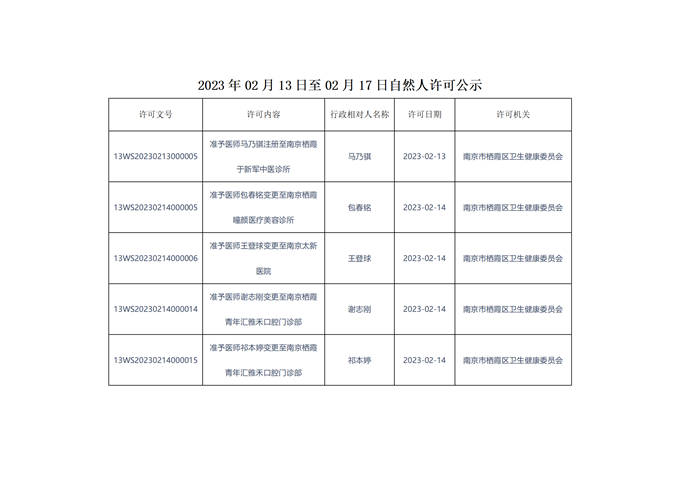 信息名稱:    2023年02月13日至02月17日自然人許可公示