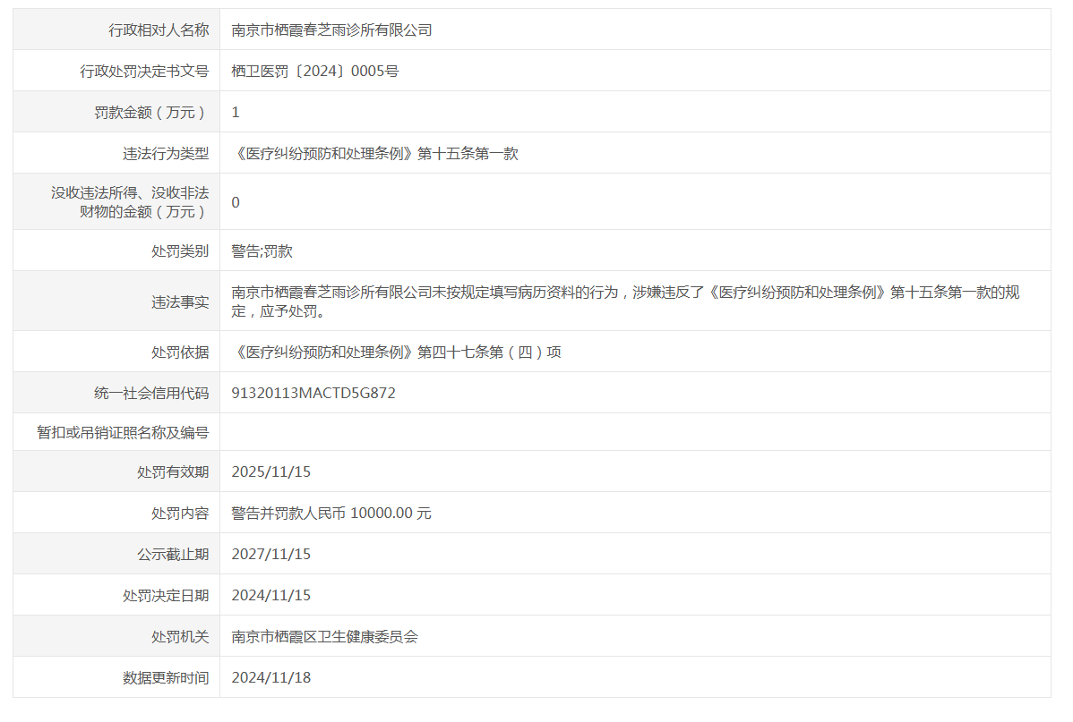 信息名稱:    醫(yī)療機構(gòu)不良執(zhí)業(yè)行為公示(棲衛(wèi)醫(yī)罰〔2024〕0005號)