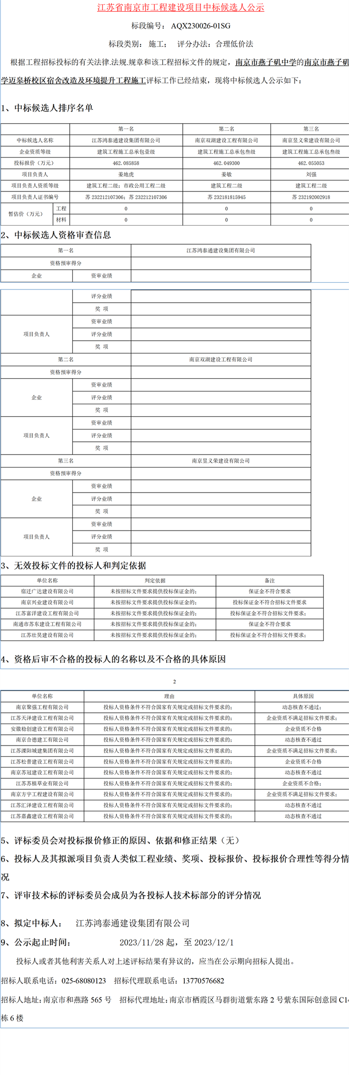 信息名稱:    南京市燕子磯中學邁皋橋校區宿舍改造及環境提升工程施工