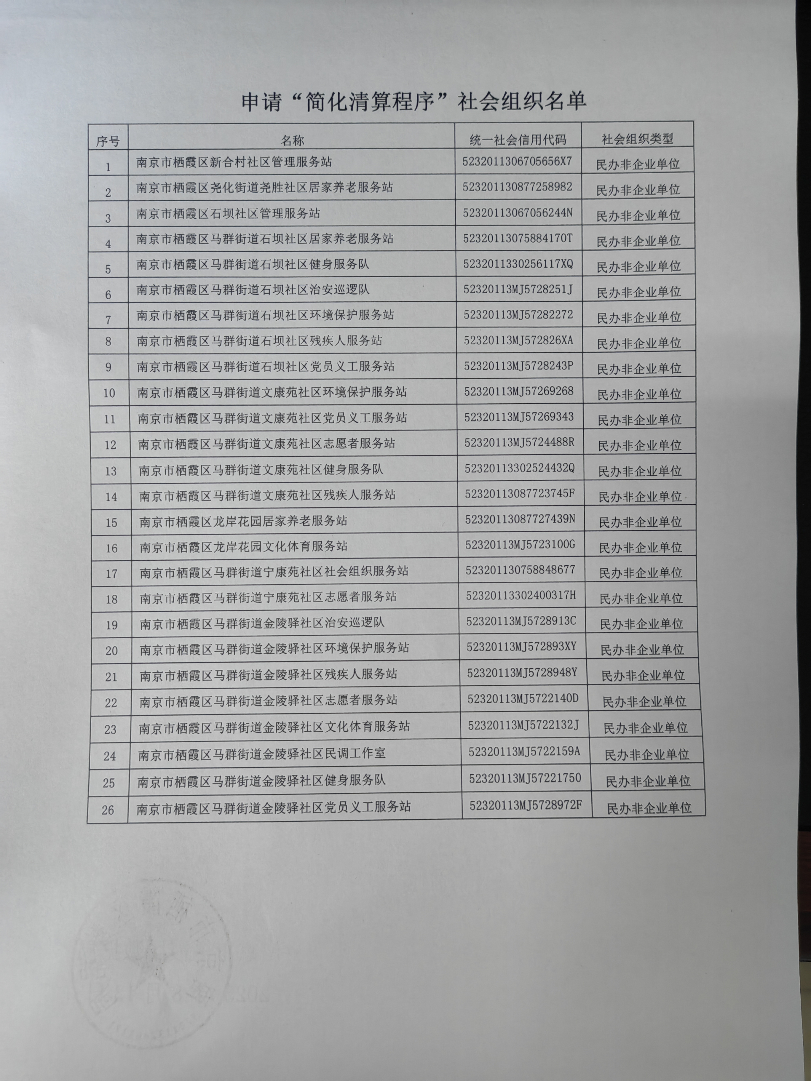 南京市棲霞區(qū)新合村社區(qū)管理服務(wù)站等26家社會(huì)組織注銷“簡(jiǎn)化清算程序”公示