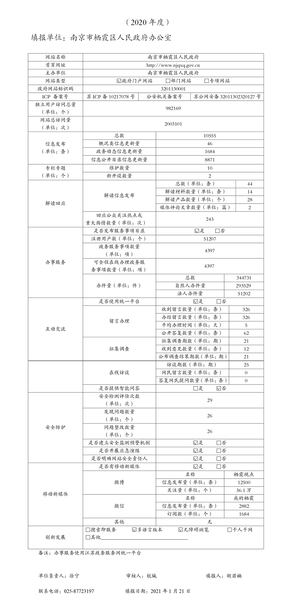 南京市棲霞區(qū)政府網(wǎng)站工作年度報(bào)表(2020年)