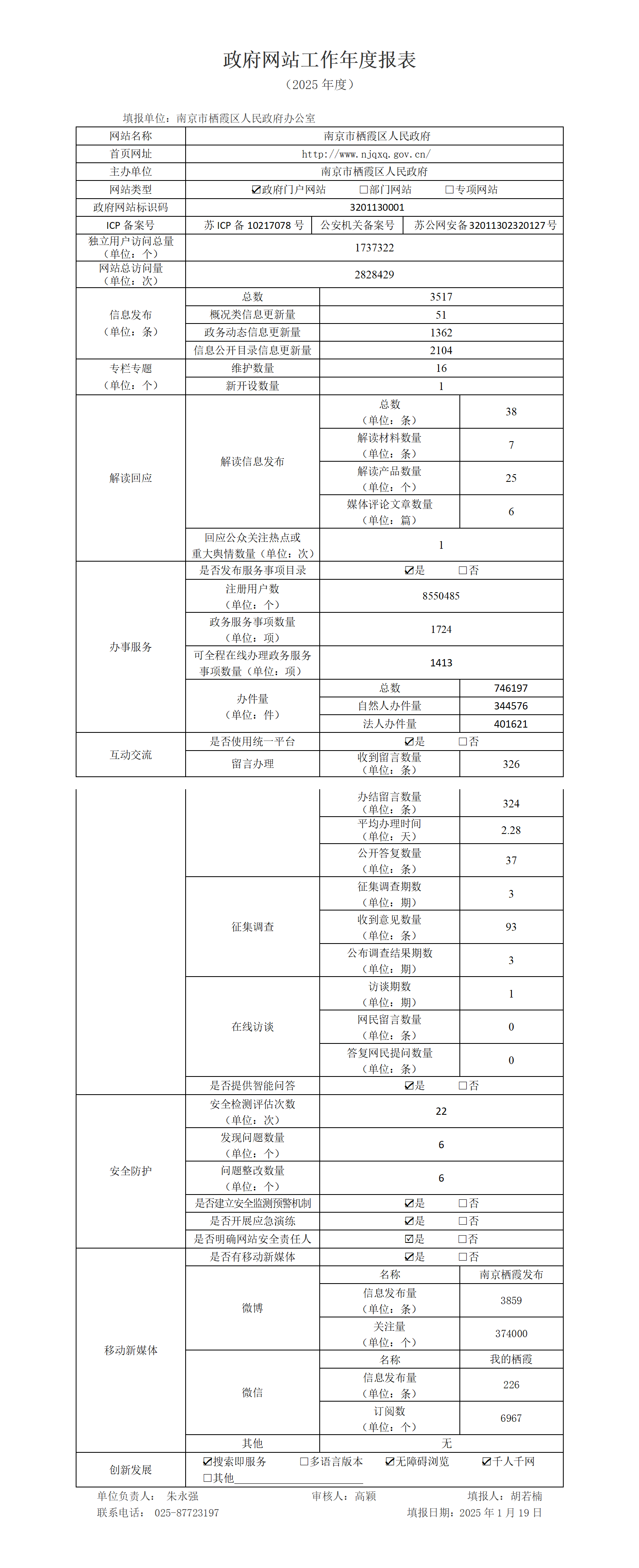 南京市棲霞區(qū)政府網(wǎng)站工作年度報表(2025年)