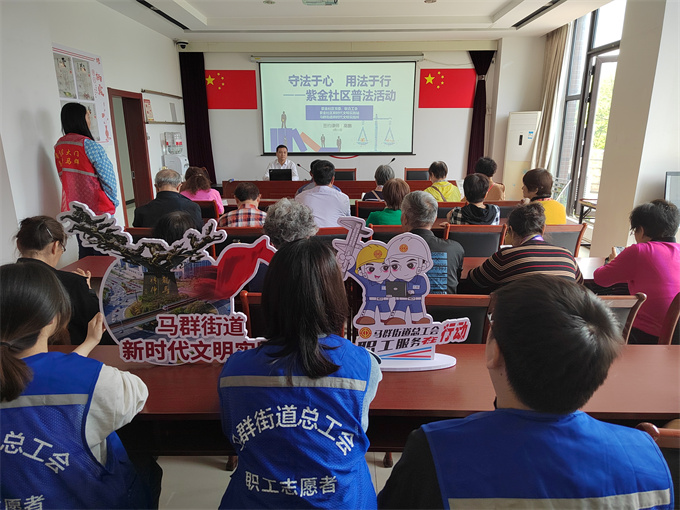 為增強(qiáng)群眾法律素養(yǎng)、提高群眾維權(quán)意識,馬群街道在紫金社區(qū)開展以“守法于心,用法于行”為主題的法律宣傳活動(dòng)。