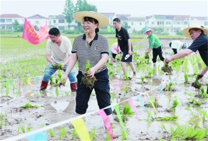 近日,棲霞區(qū)龍?zhí)督值滥现写彘_展第三屆農(nóng)民插秧賽。參賽隊(duì)伍分別為種植戶代表、青年黨員代表、機(jī)關(guān)干部代表和村民代表,參賽選手卷起褲管、擼起袖子、走進(jìn)水田,彎腰、擇株、分苗、插秧……連串動(dòng)作一氣呵成,選手們你追我趕,互相較勁,田埂之上村民們?yōu)殛?duì)員們加油吶喊。