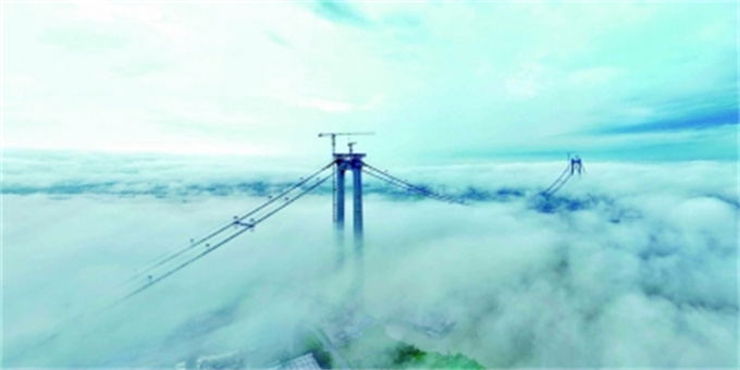 龍?zhí)堕L江大橋首根主纜索股架設成功。