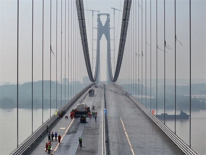 目前,大橋主橋鋼橋面下層澆筑式瀝青混凝土開始鋪裝。由南京市公建中心負責(zé)建設(shè)的仙新路過江通道全長約13.17公里,通道主線設(shè)計時速80公里,雙向六車道,按城市快速路標(biāo)準建設(shè)。仙新路過江通道,主跨1760米,主塔高263.8米,建成后將成為國內(nèi)第一、世界第三大跨度的懸索橋。