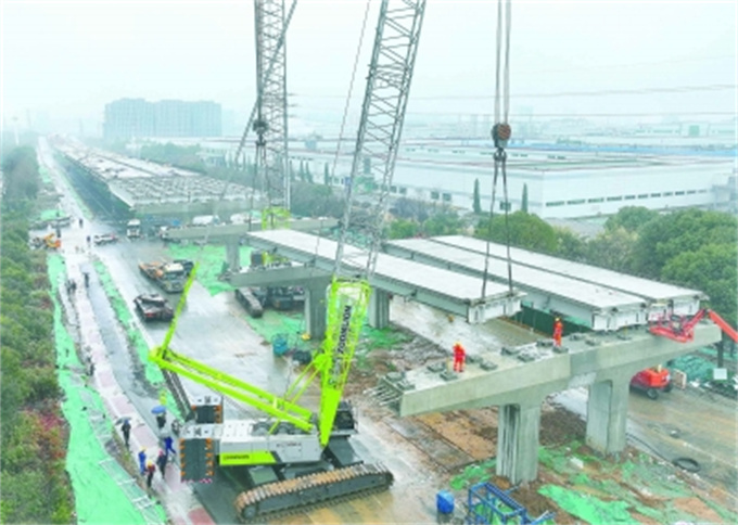 229,中建安裝施工人員在仙新路過江通道南接線進(jìn)行鋼板疊合梁架設(shè)施工。目前,鋼板疊合梁架設(shè)已完成25跨,剩余37跨計(jì)劃于531日前全部架設(shè)完成。