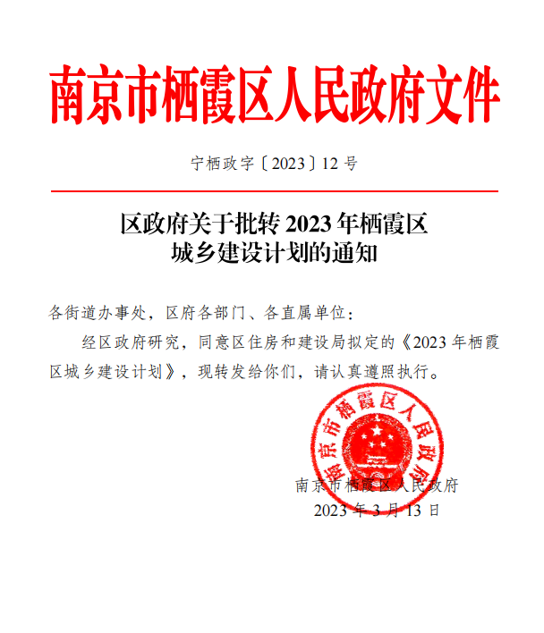 寧棲政字〔2023〕12號 區政府關于批轉2023年棲霞區城鄉建設計劃的通知.pdf