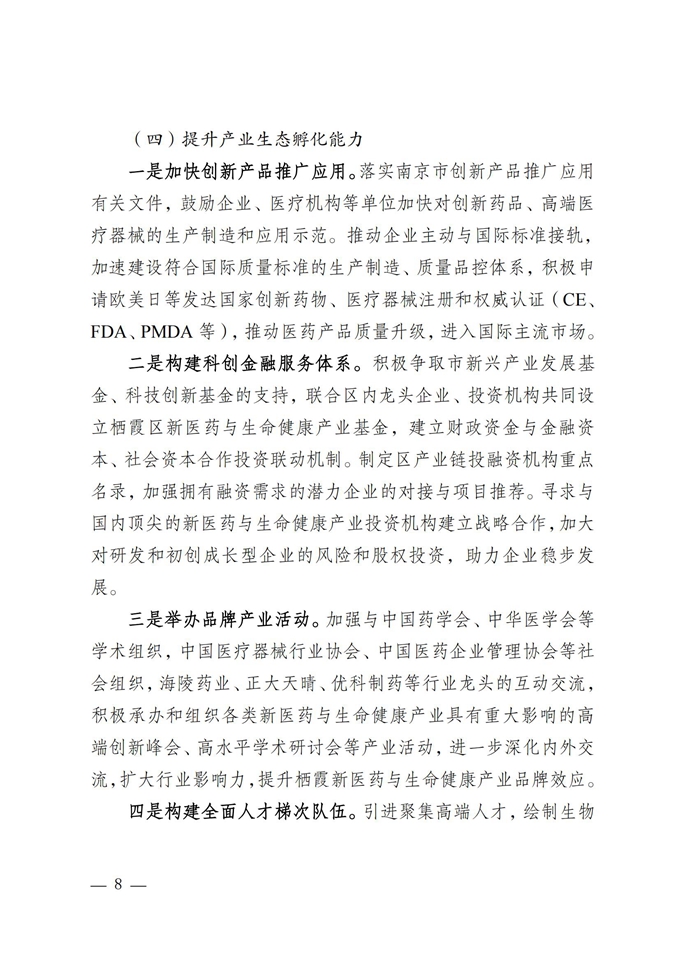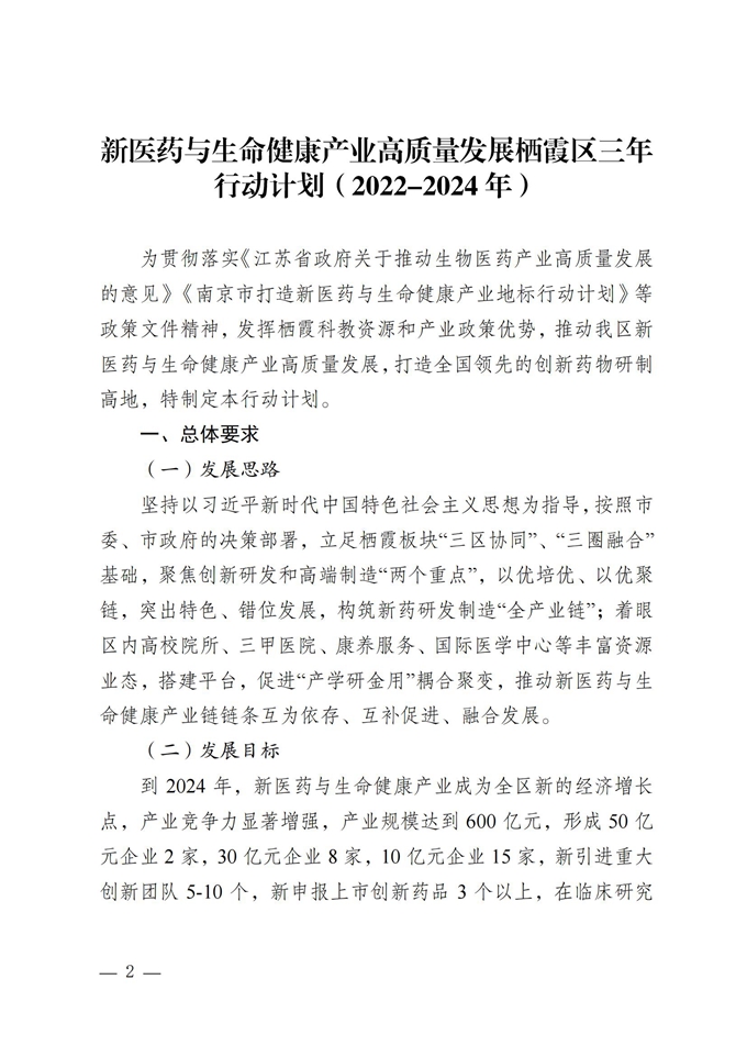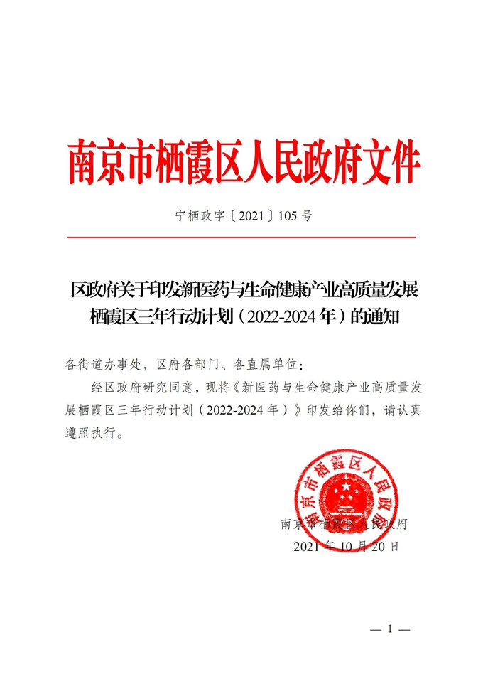 區政府關于印發新醫藥與生命健康產業高質量發展棲霞區三年行動計劃(2022年—2024年)的通知