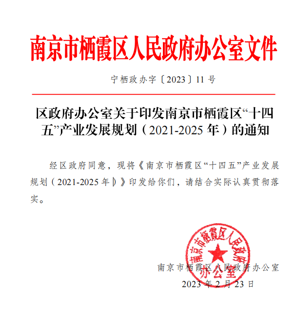 區政府辦公室關于印發南京市棲霞區“十四五”產業發展規劃(2021-2025年)的通知