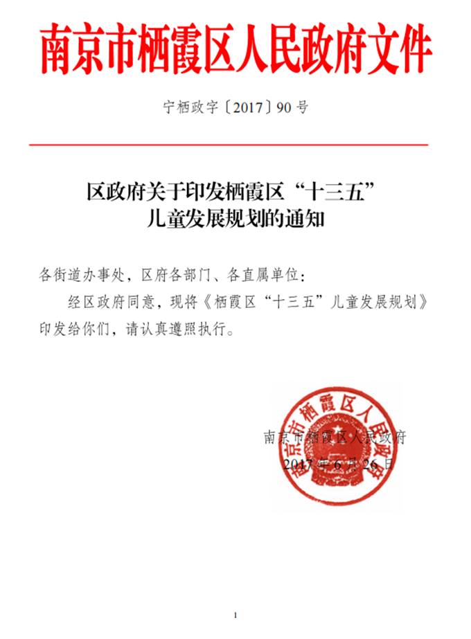 區政府關于印發《南京市棲霞區“十三五”兒童發展規劃》的通知(發文)(已蓋章).pdf