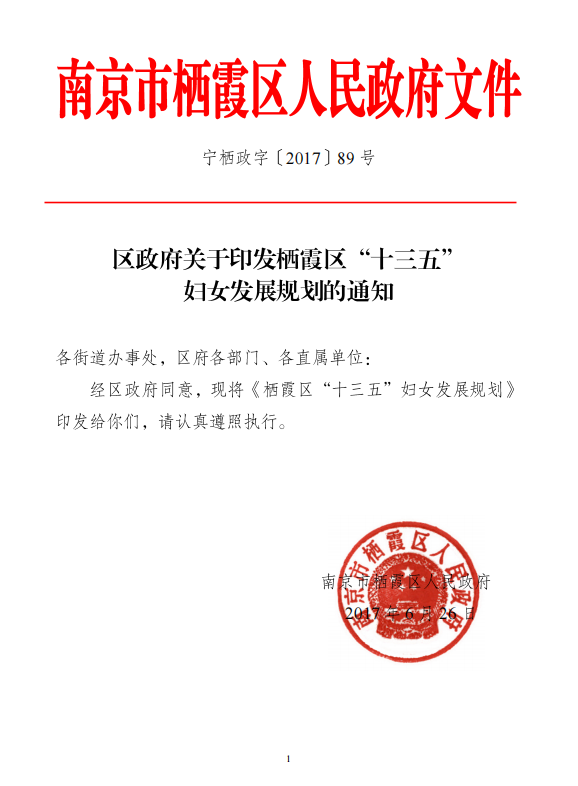 區政府關于印發《南京市棲霞區“十三五”婦女發展規劃》的通知(發文)(已蓋章).pdf