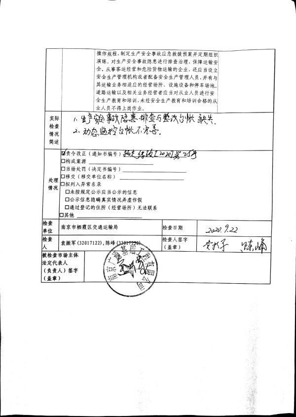 9月份交運局雙隨機一公開計劃與檢查結果