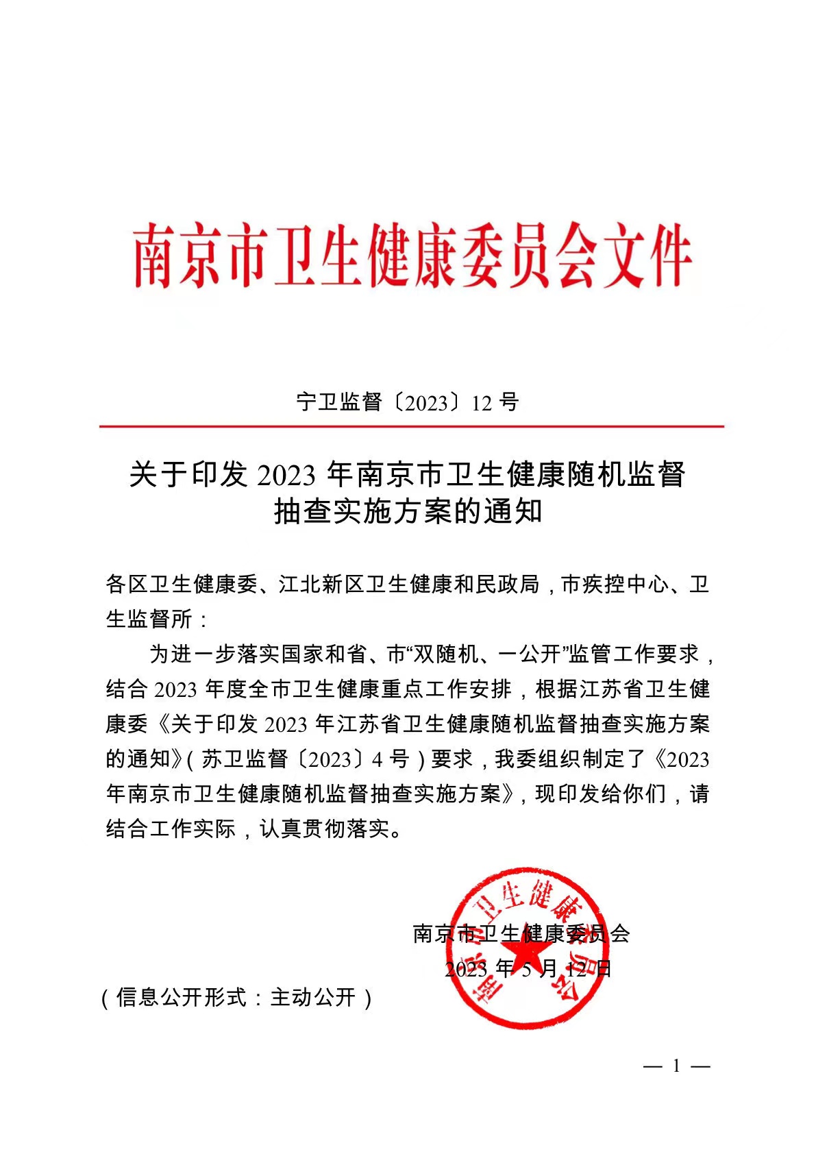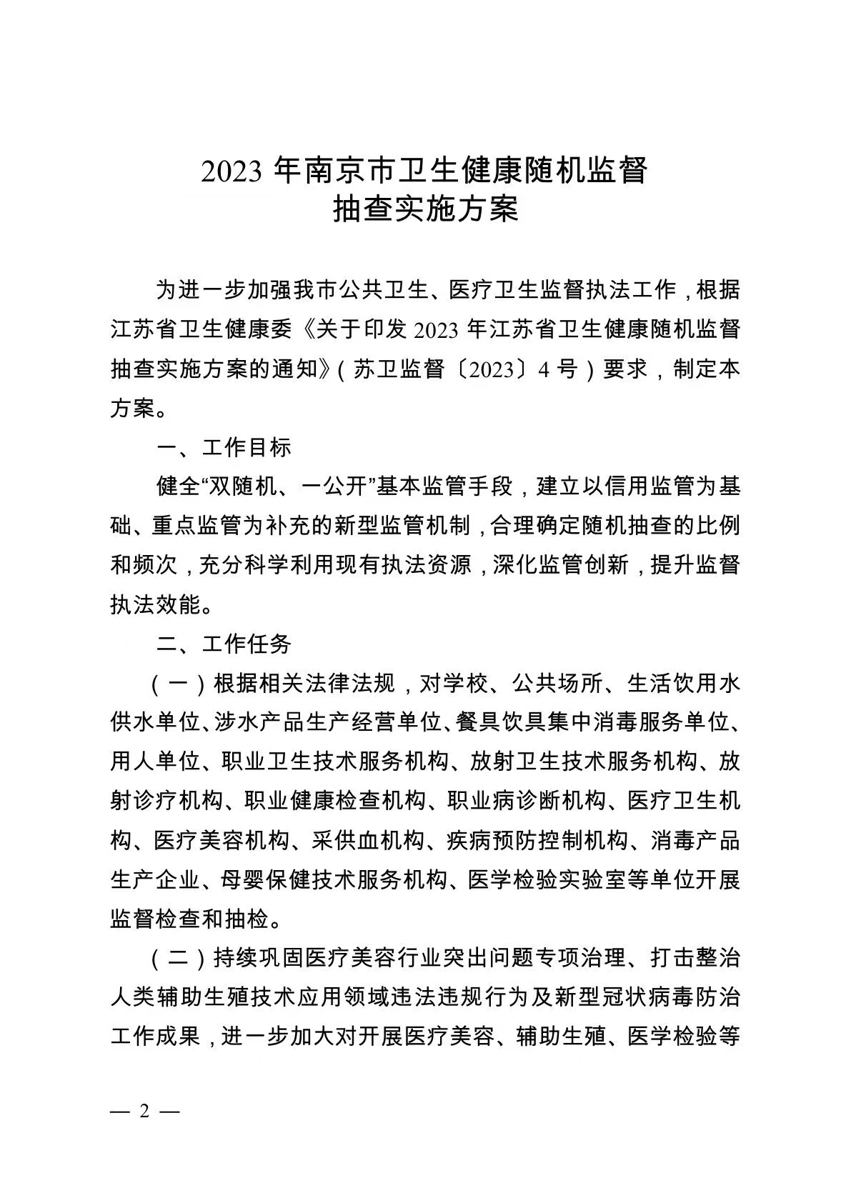 2023年棲霞區(qū)公共衛(wèi)生國家隨機監(jiān)督抽查計劃