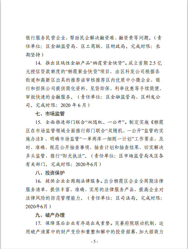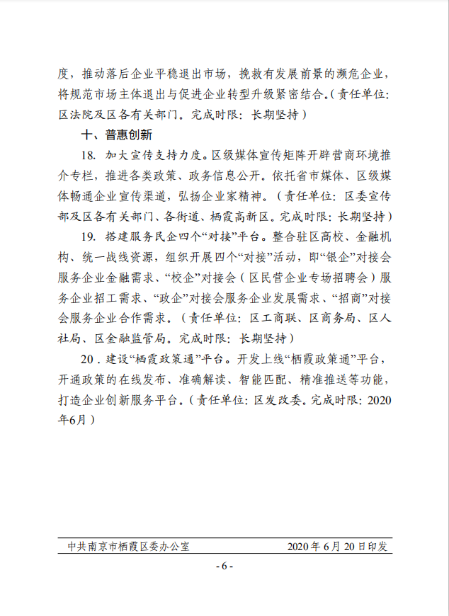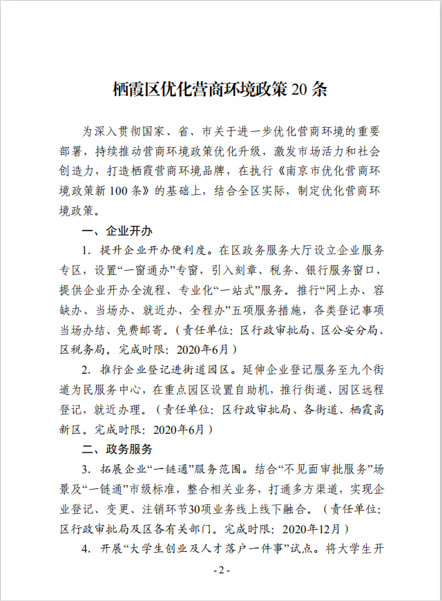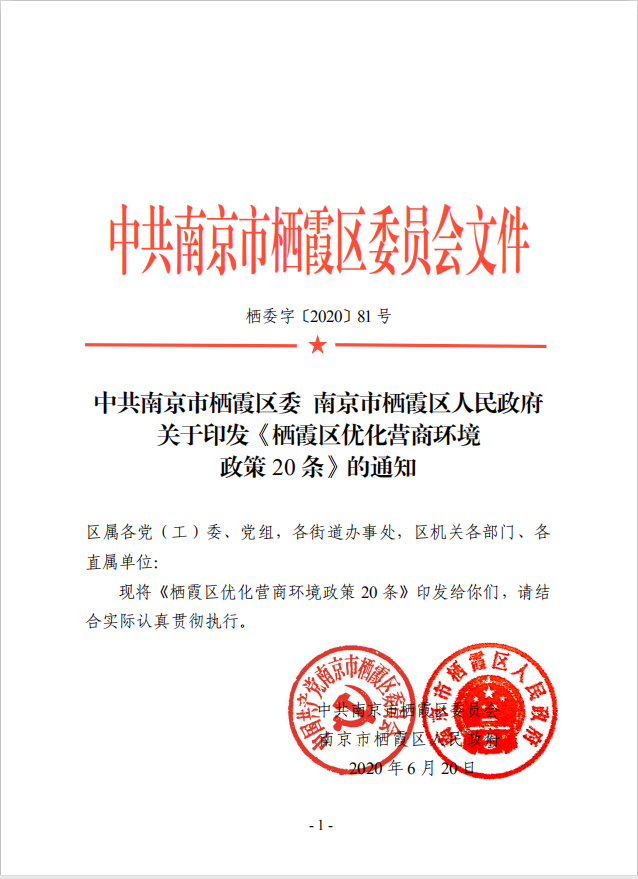 關于印發《棲霞區優化營商環境政策20條》的通知