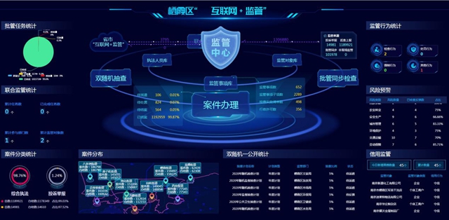 今年8月,南京市印發(fā)了《南京市“互聯(lián)網(wǎng)+監(jiān)管”系統(tǒng)建設(shè)方案》,棲霞區(qū)作為唯一試點主城區(qū),在“批管同步”改革的基礎(chǔ)上構(gòu)建起“兩中心一助手一門戶”的“互聯(lián)網(wǎng)+監(jiān)管”信息系統(tǒng)。在該系統(tǒng)中,監(jiān)管數(shù)據(jù)中心、案件辦理中心、綜合執(zhí)法助手和統(tǒng)一工作門戶,運用互聯(lián)網(wǎng)、大數(shù)據(jù)等技術(shù)手段,實現(xiàn)監(jiān)管數(shù)據(jù)歸集共享、監(jiān)管過程全記錄、監(jiān)管數(shù)據(jù)分析、聯(lián)動監(jiān)管、風險預(yù)警,優(yōu)化市場監(jiān)管流程,推進監(jiān)管資源整合,實施精確制導式靶向監(jiān)管,構(gòu)建監(jiān)管與服務(wù)并重的網(wǎng)絡(luò)市場生態(tài)體系。
