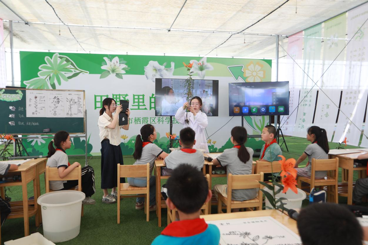 八卦洲科學教育考察活動由棲霞區科協承辦,專家團赴江蘇省科協農業科普基地(百合實驗基地)參觀,并觀摩“田野里的科學課”,棲霞區科學老師楊帆、南京農業大學博士生梁蕤和八卦洲中橋小學四2班學生共同帶來《探秘百合》一課。課堂中,楊老師引導學生通過科學的方法觀察百合基地的各類百合,為百合制作植物名片,梁老師對百合的專業知識進行講解,學生受益匪淺,獲得了各位院士專家的一致好評。