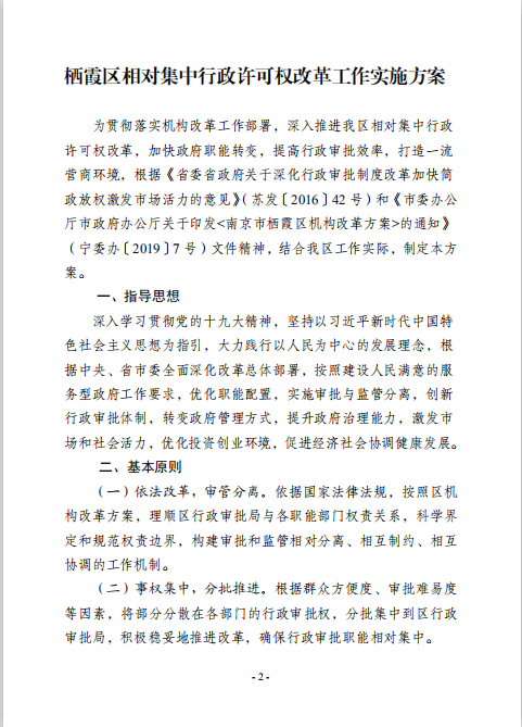 區(qū)政府辦公室關(guān)于印發(fā)棲霞區(qū)相對(duì)集中行政許可權(quán)改革工作實(shí)施方案的通知