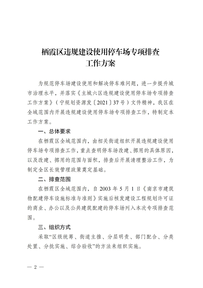 區(qū)政府辦公室關(guān)于轉(zhuǎn)發(fā)棲霞區(qū)違規(guī)建設(shè)使用停車場專項排查工作方案的通知
