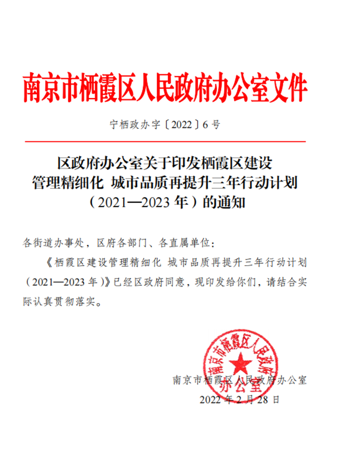 區政府辦公室關于印發棲霞區建設管理精細化 城市品質再提升三年行動計劃(2021—2023年)的通知