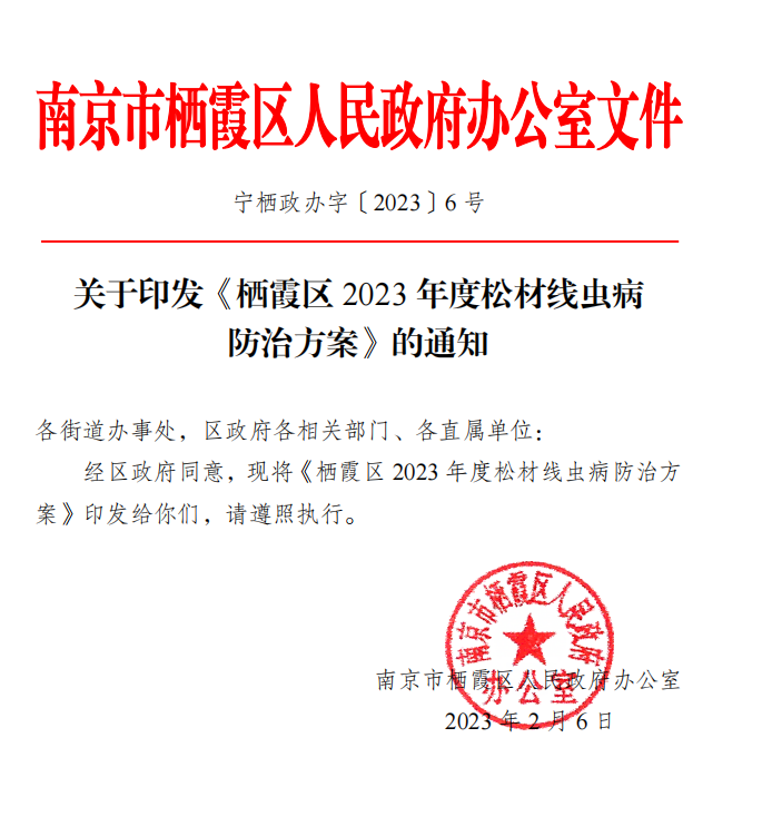 關于印發《棲霞區2023年度松材線蟲病防治方案》的通知