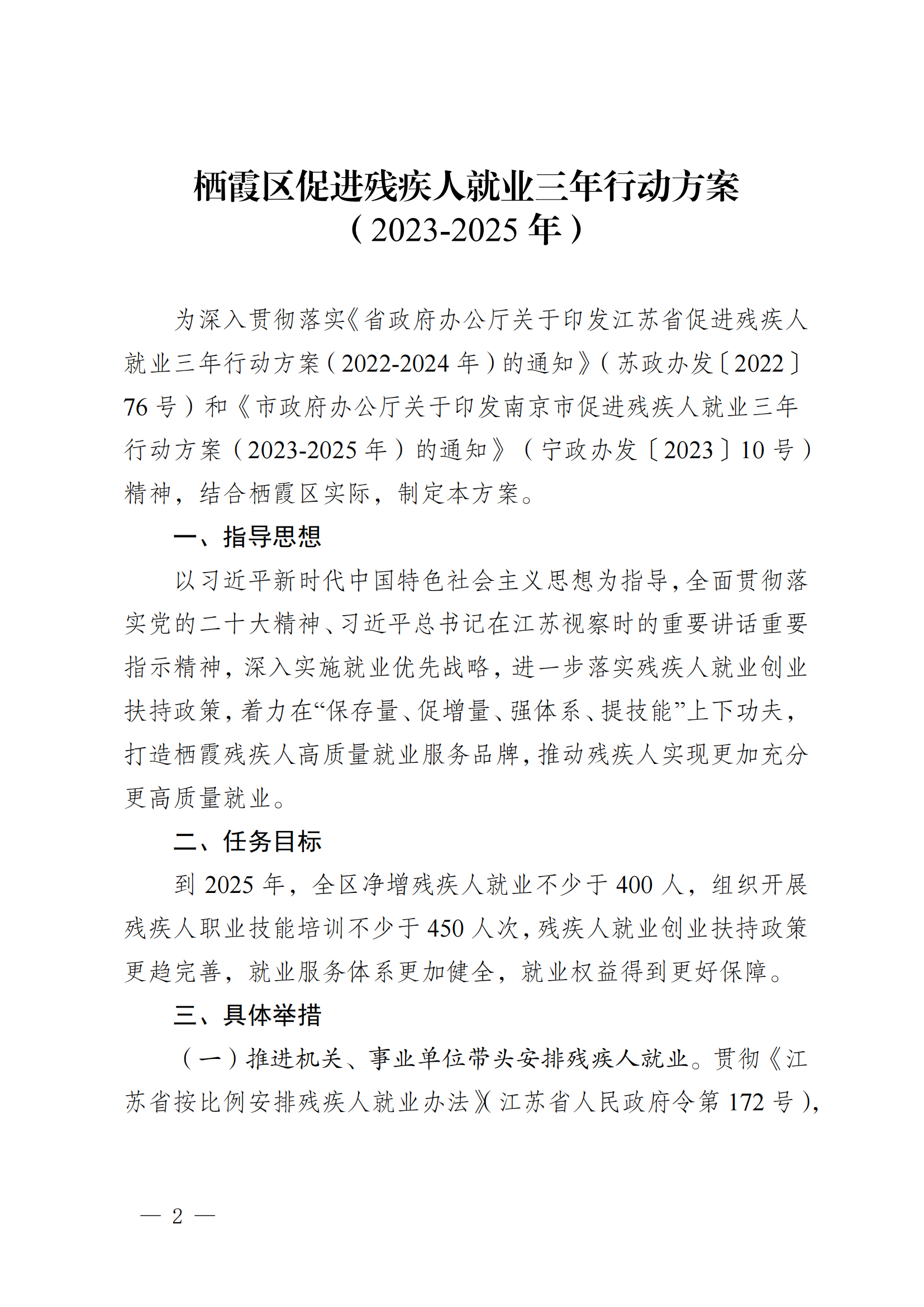 寧棲政辦字〔2023〕28號 區政府辦關于印發棲霞區促進殘疾人就業三年行動方案(2023—2025年)的通知