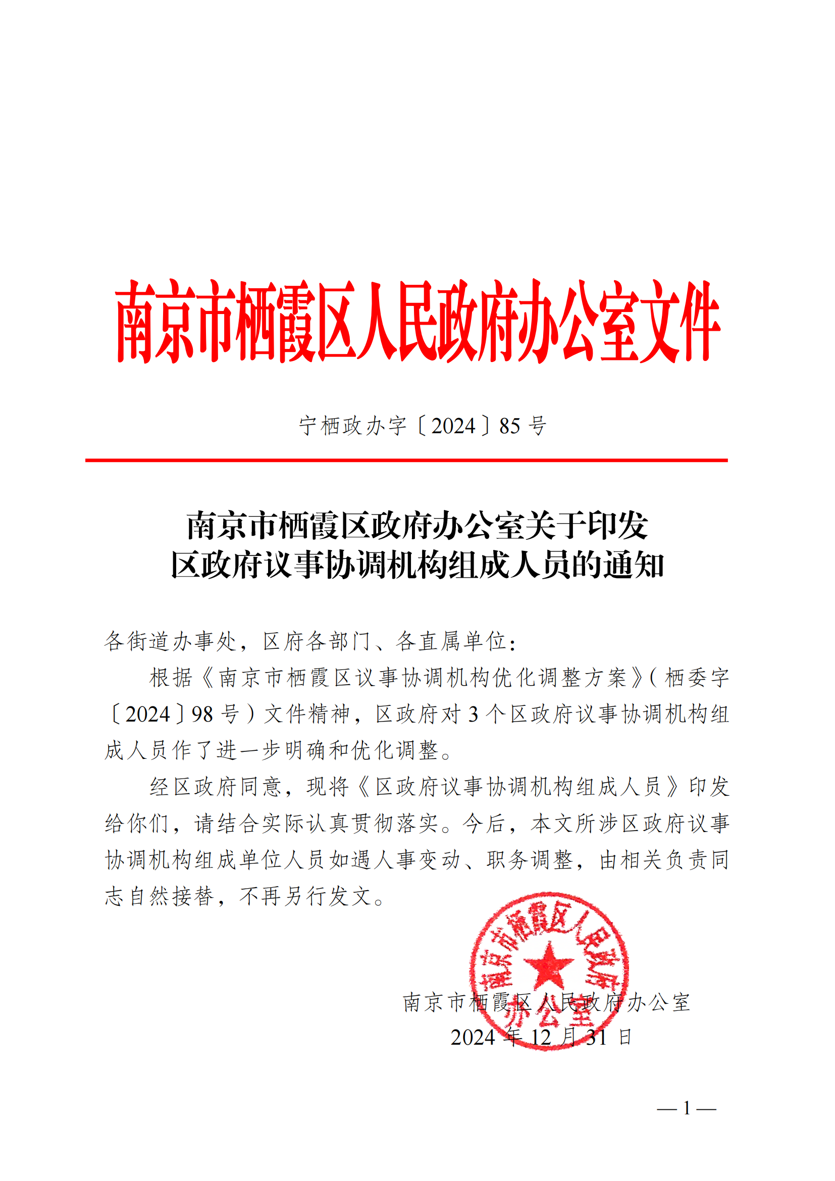 南京市棲霞區(qū)政府辦公室關(guān)于印發(fā)區(qū)政府議事協(xié)調(diào)機構(gòu)組成人員的通知