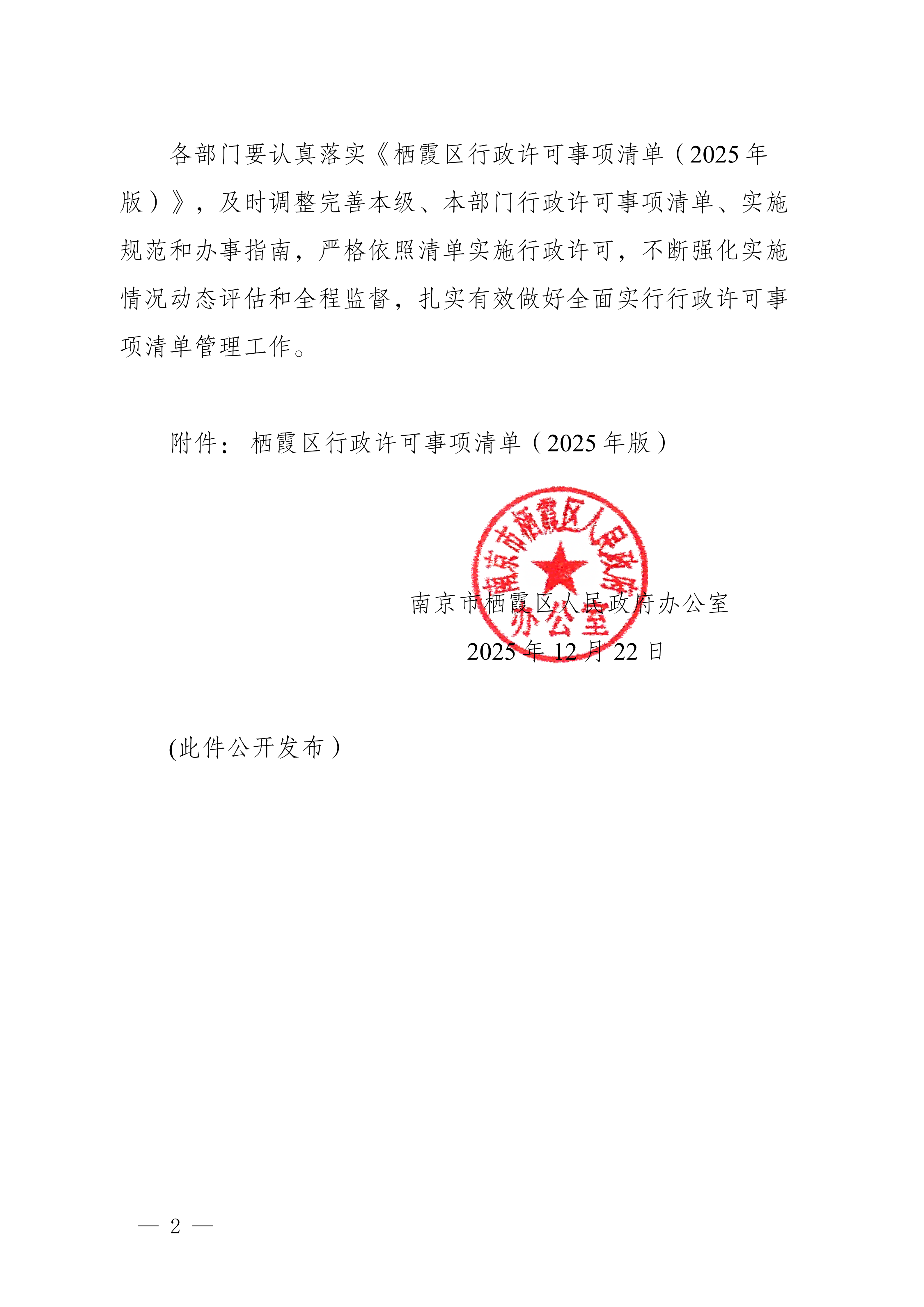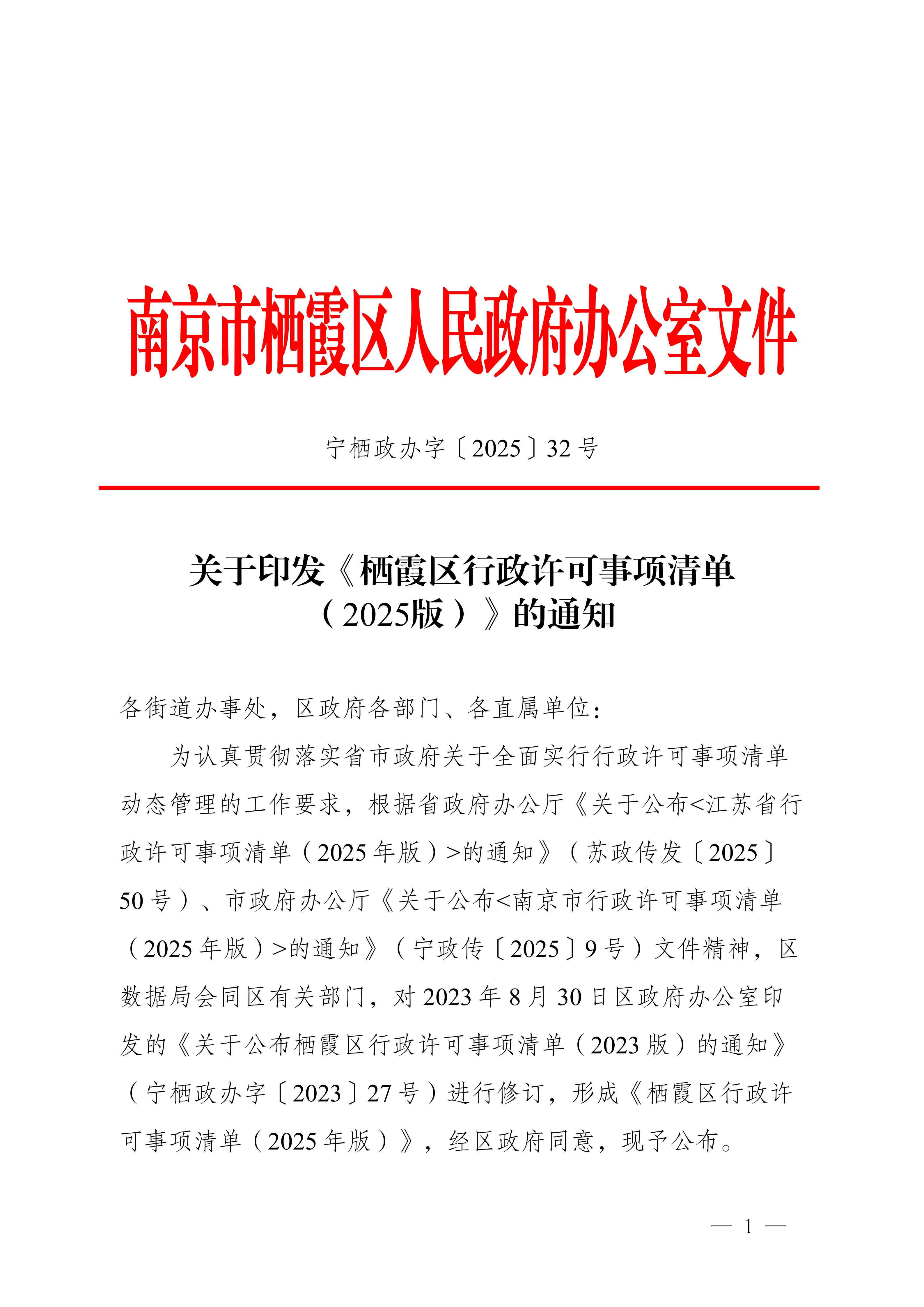 寧棲政辦字〔2025〕32號 關于印發《棲霞區行政許可事項清單(2025版)》的通知