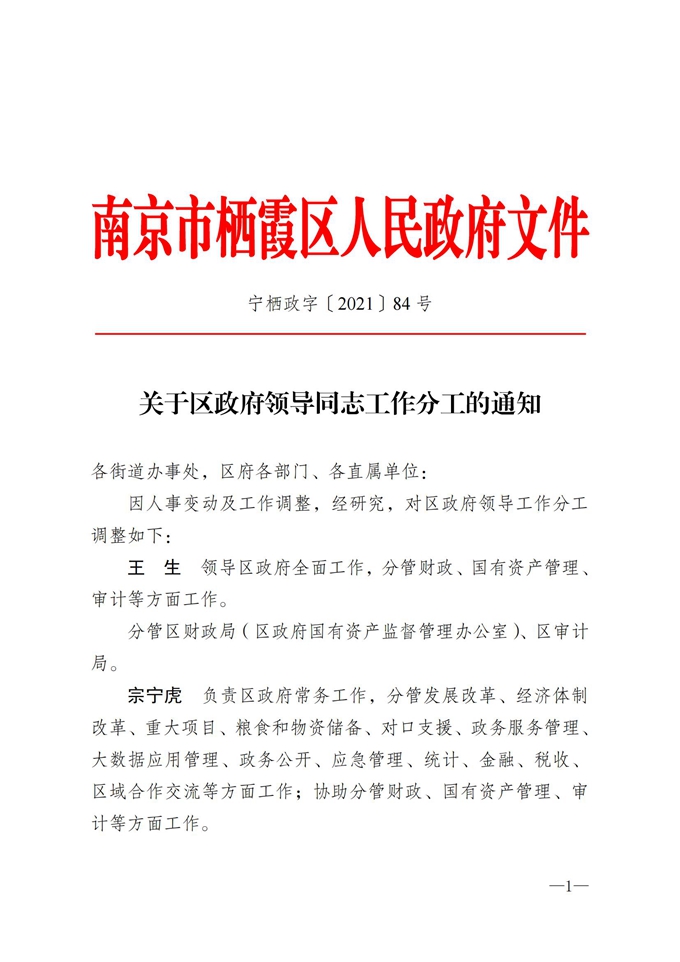 區(qū)政府關于調(diào)整部分領導同志分工的通知
