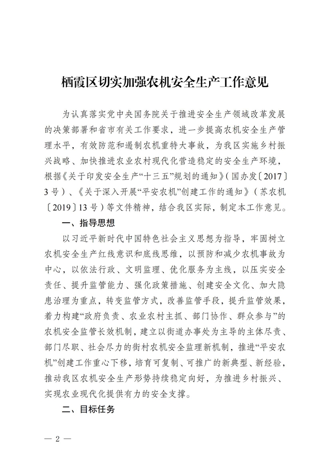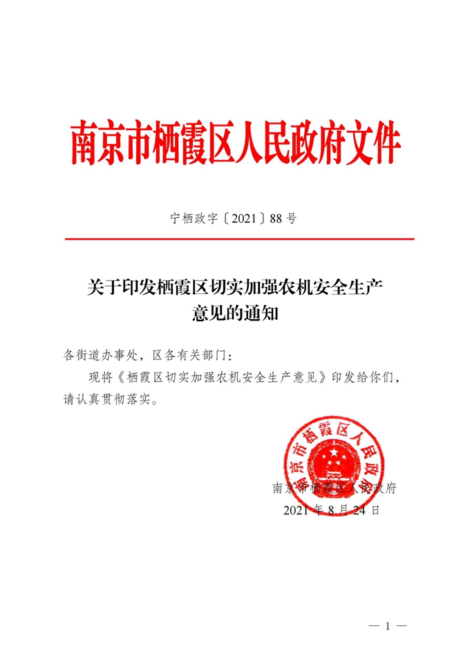 關于印發棲霞區切實加強農機安全生產意見的通知