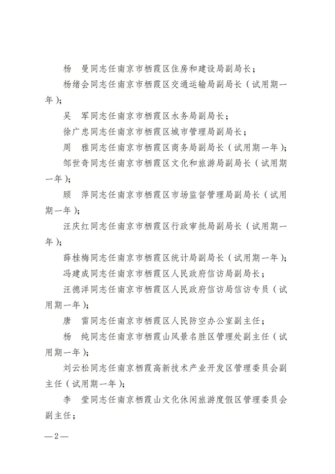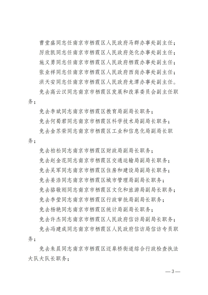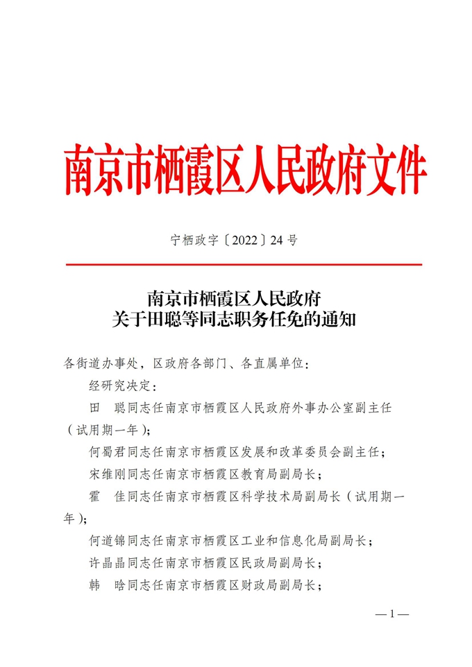 南京市棲霞區(qū)人民政府關(guān)于田聰?shù)韧韭殑?wù)任免的通知