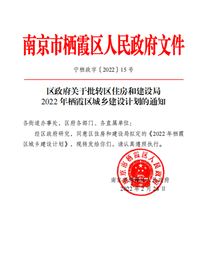 區政府關于批轉區住房和建設局2022年棲霞區城鄉建設計劃的通知