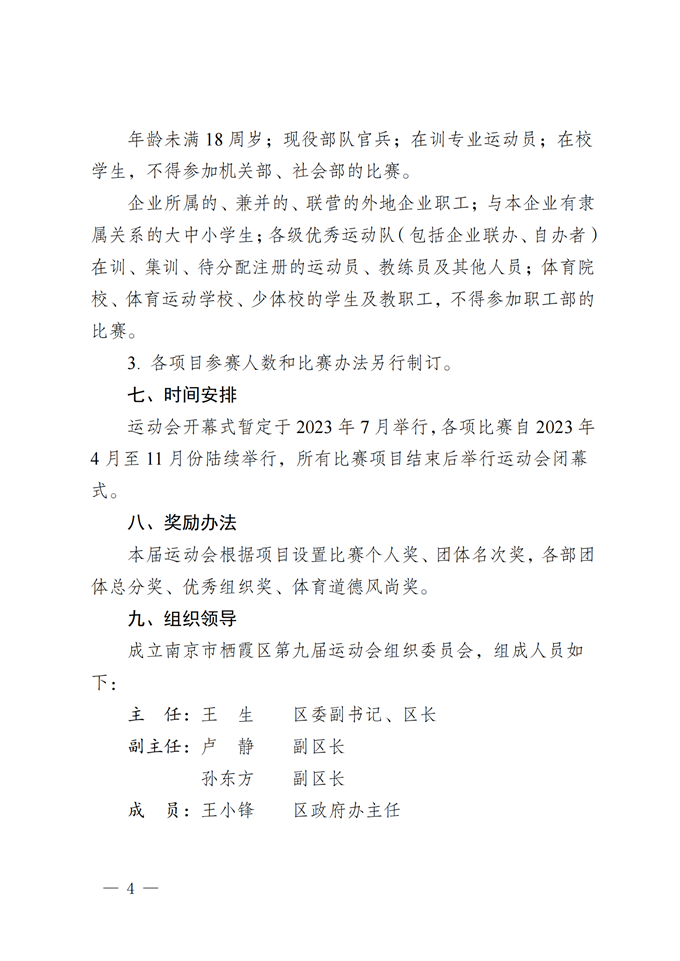 區政府關于印發南京市棲霞區第九屆運動會方案的通知