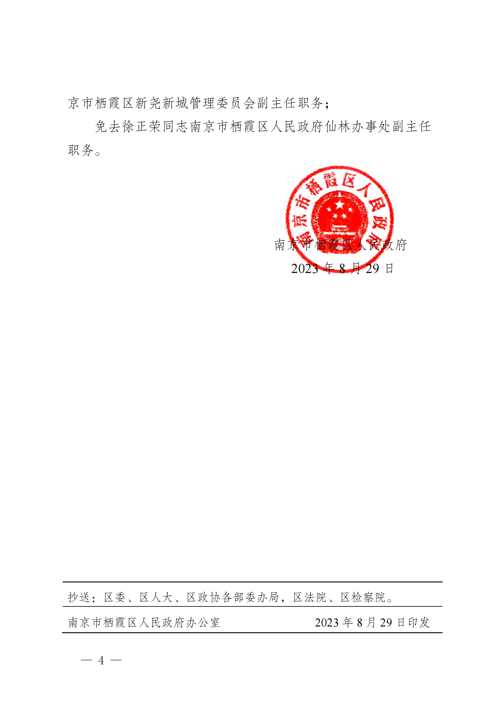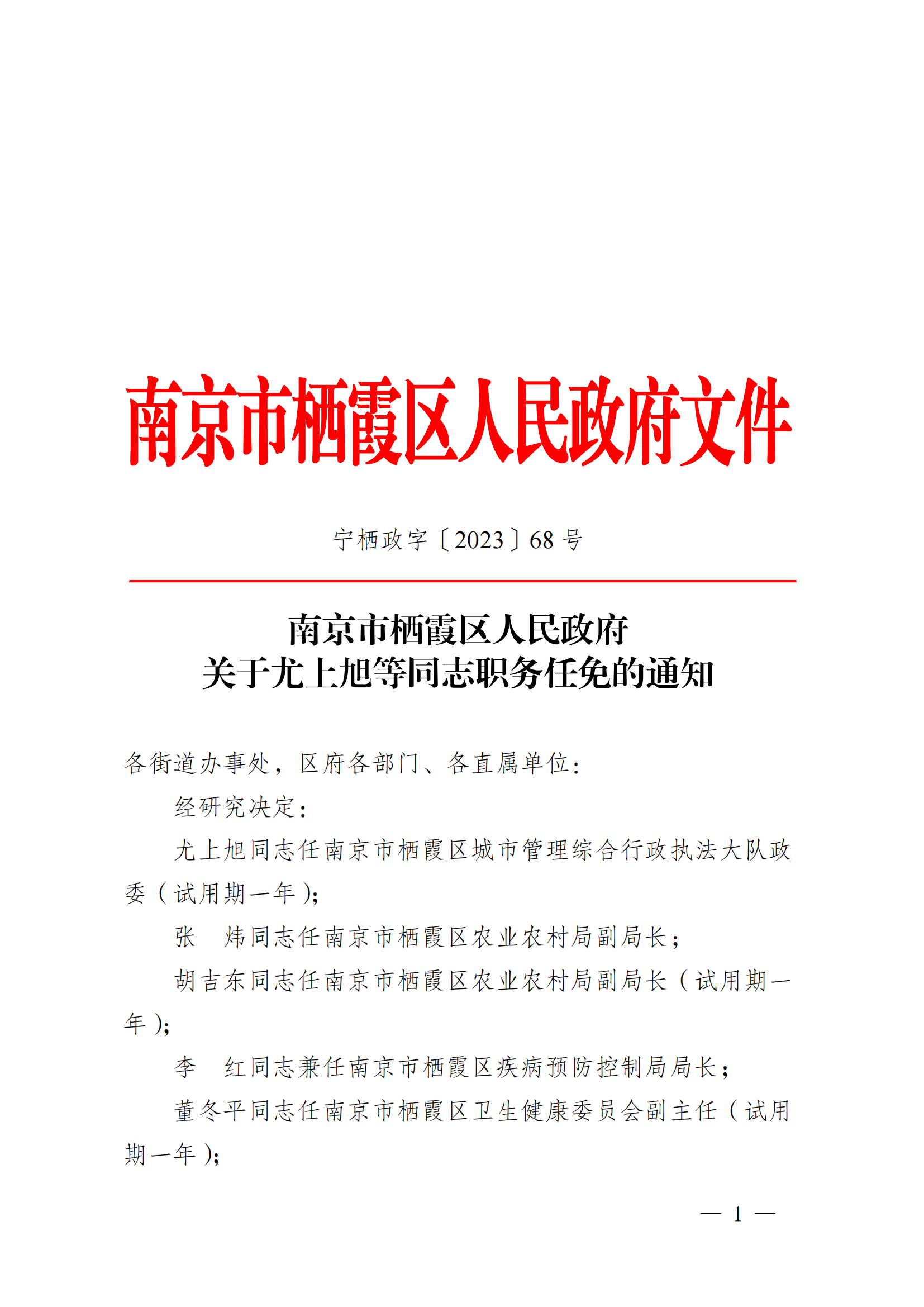 寧棲政字〔2023〕68號 南京市棲霞區人民政府關于尤上旭等同志職務任免的通知
