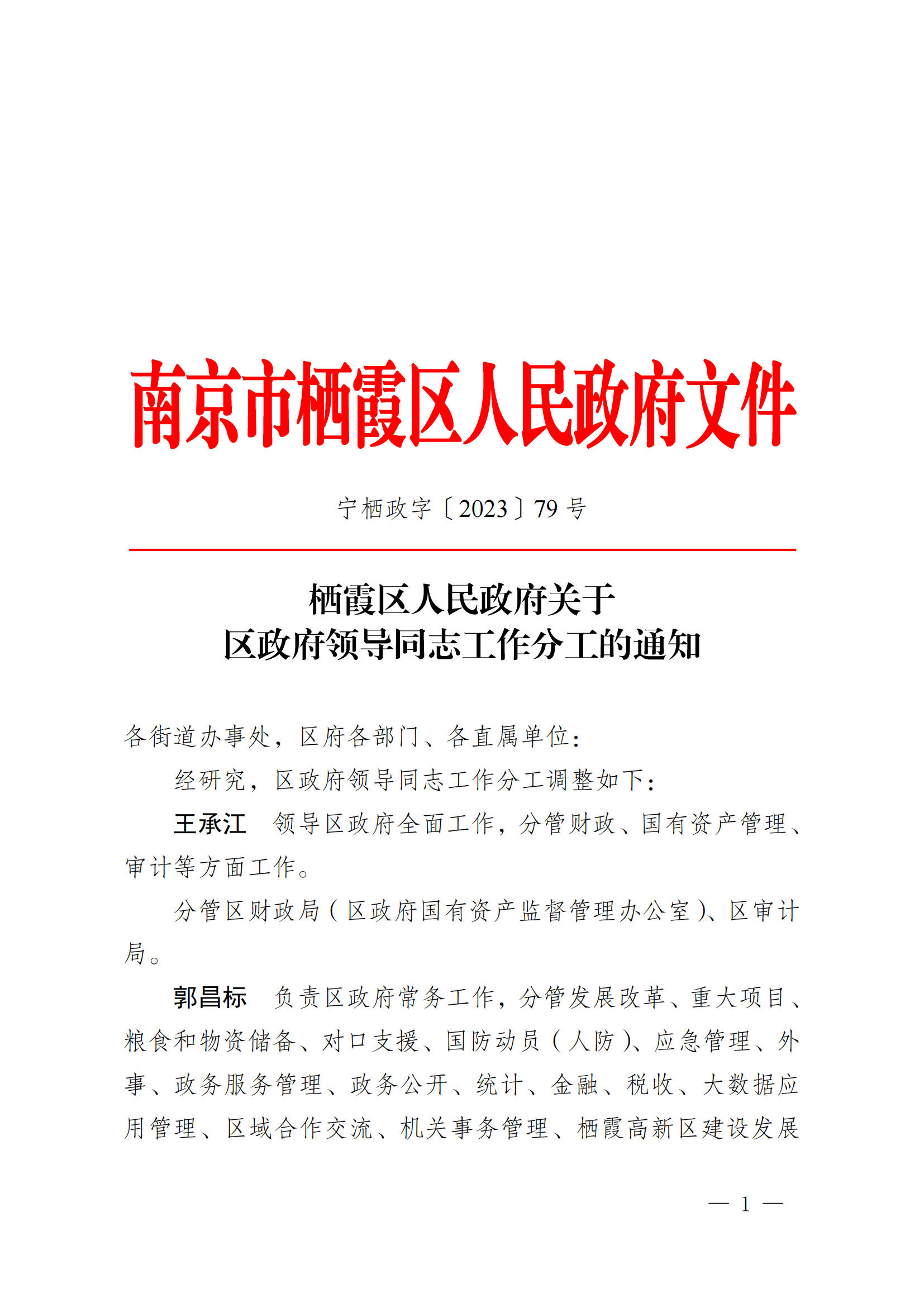 區(qū)政府關(guān)于區(qū)政府調(diào)整部分領(lǐng)導(dǎo)同志工作分工的通知