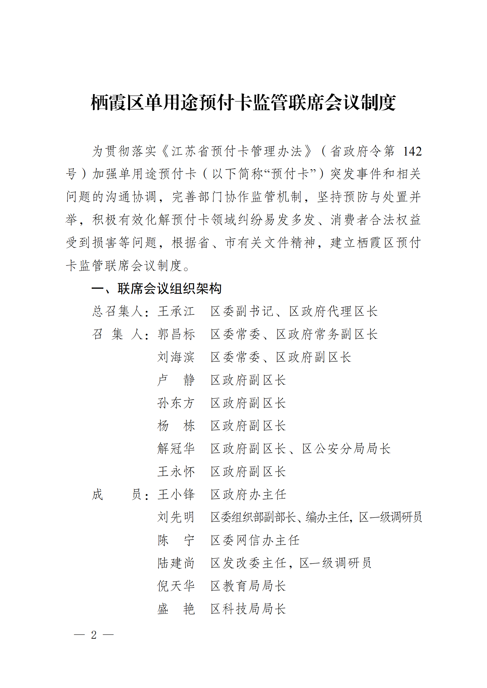 區政府關于印發《棲霞區單用途預付卡監管聯席會議制度》的通知
