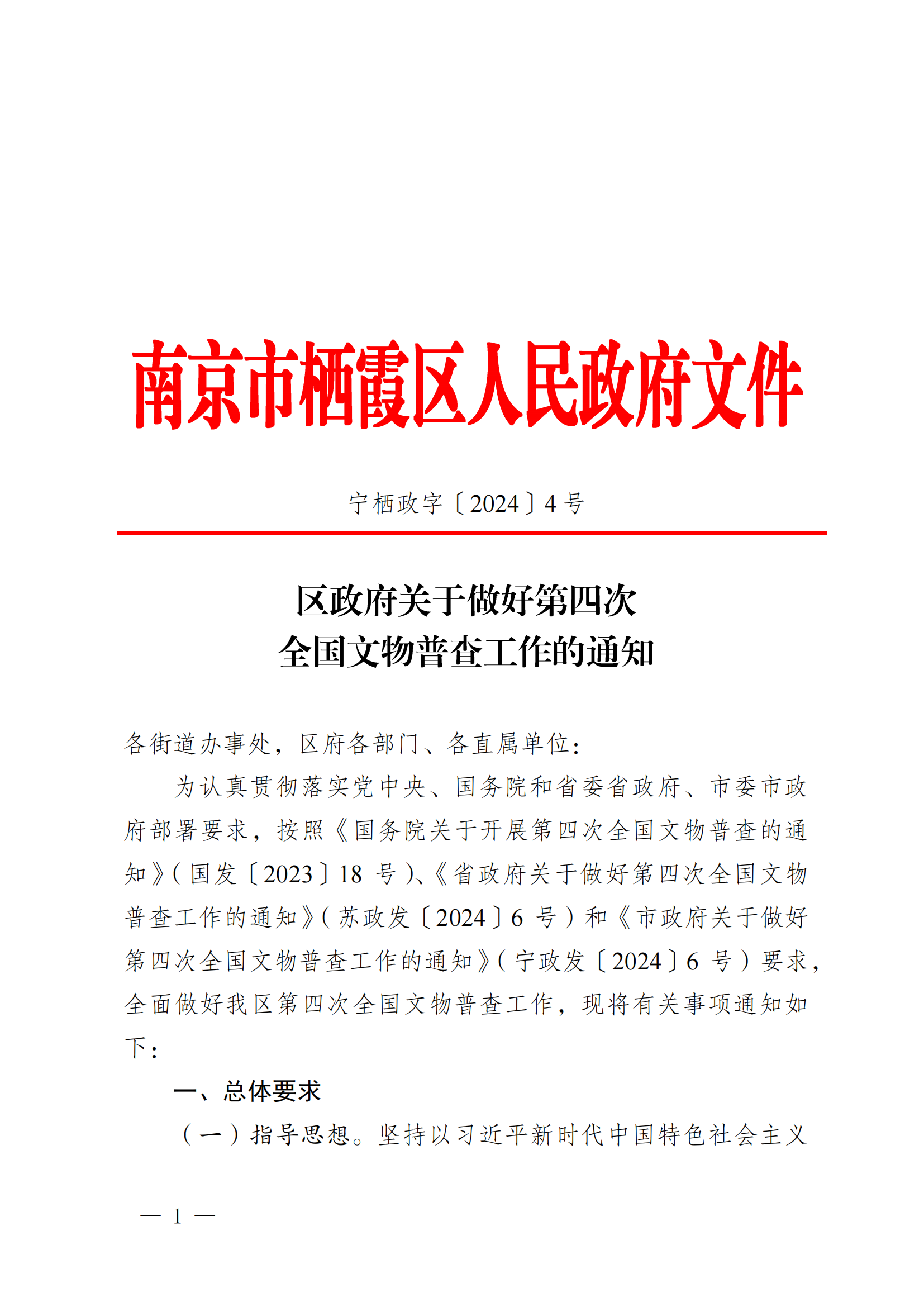 寧棲政字〔2024〕4號 區政府關于做好第四次全國文物普查工作的通知