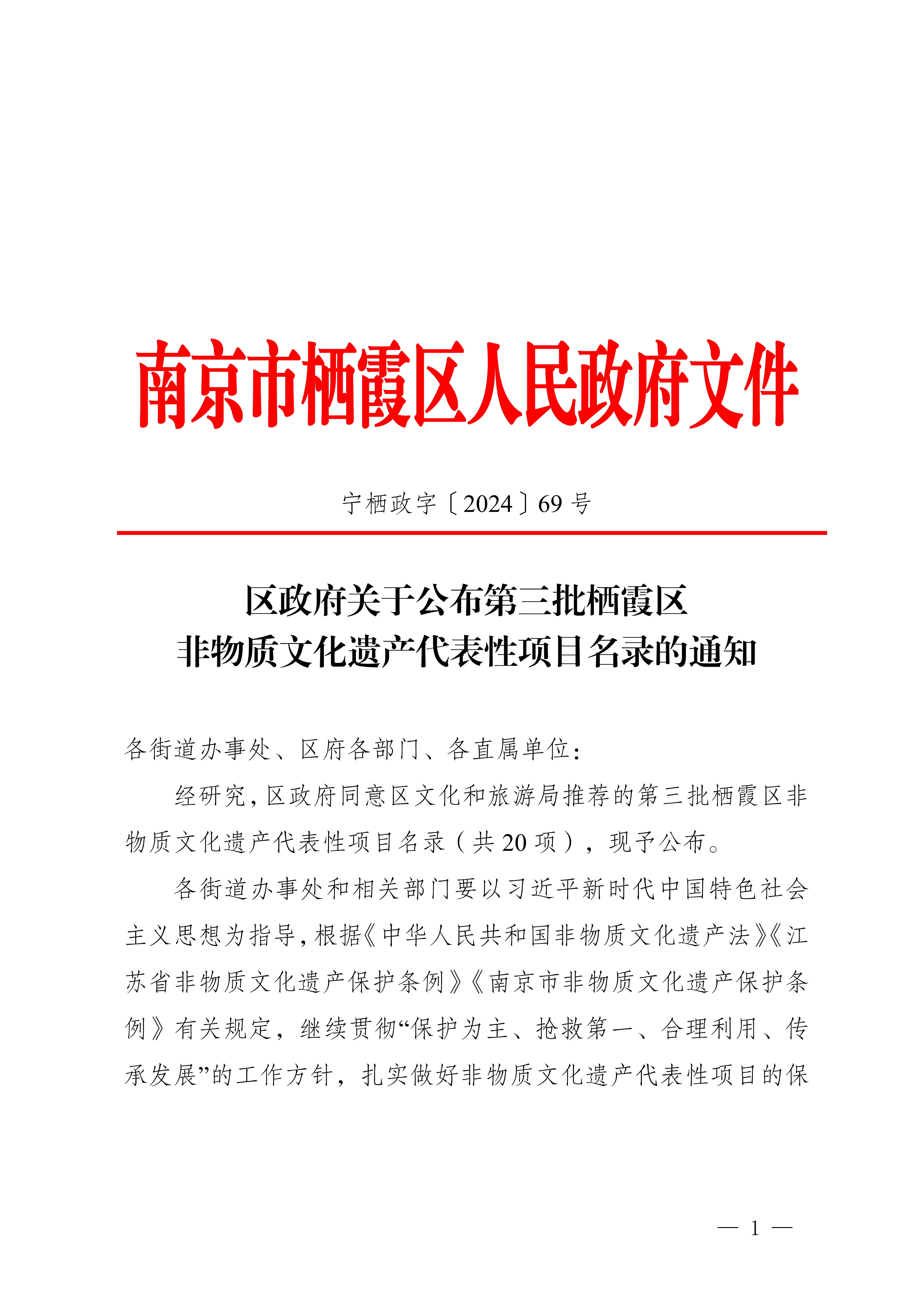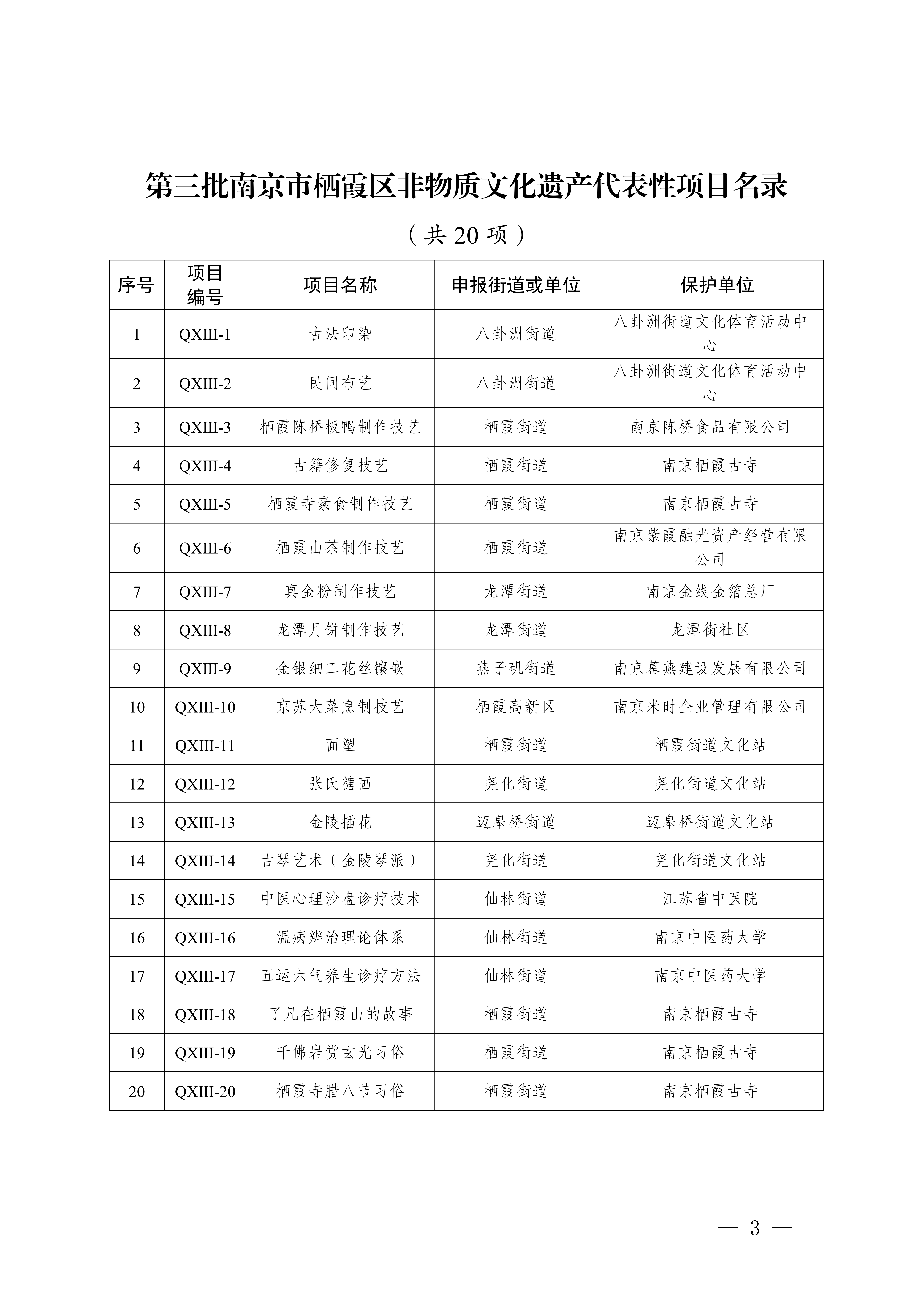 區(qū)政府關于公布第三批棲霞區(qū)非物質文化遺產(chǎn)名錄的通知