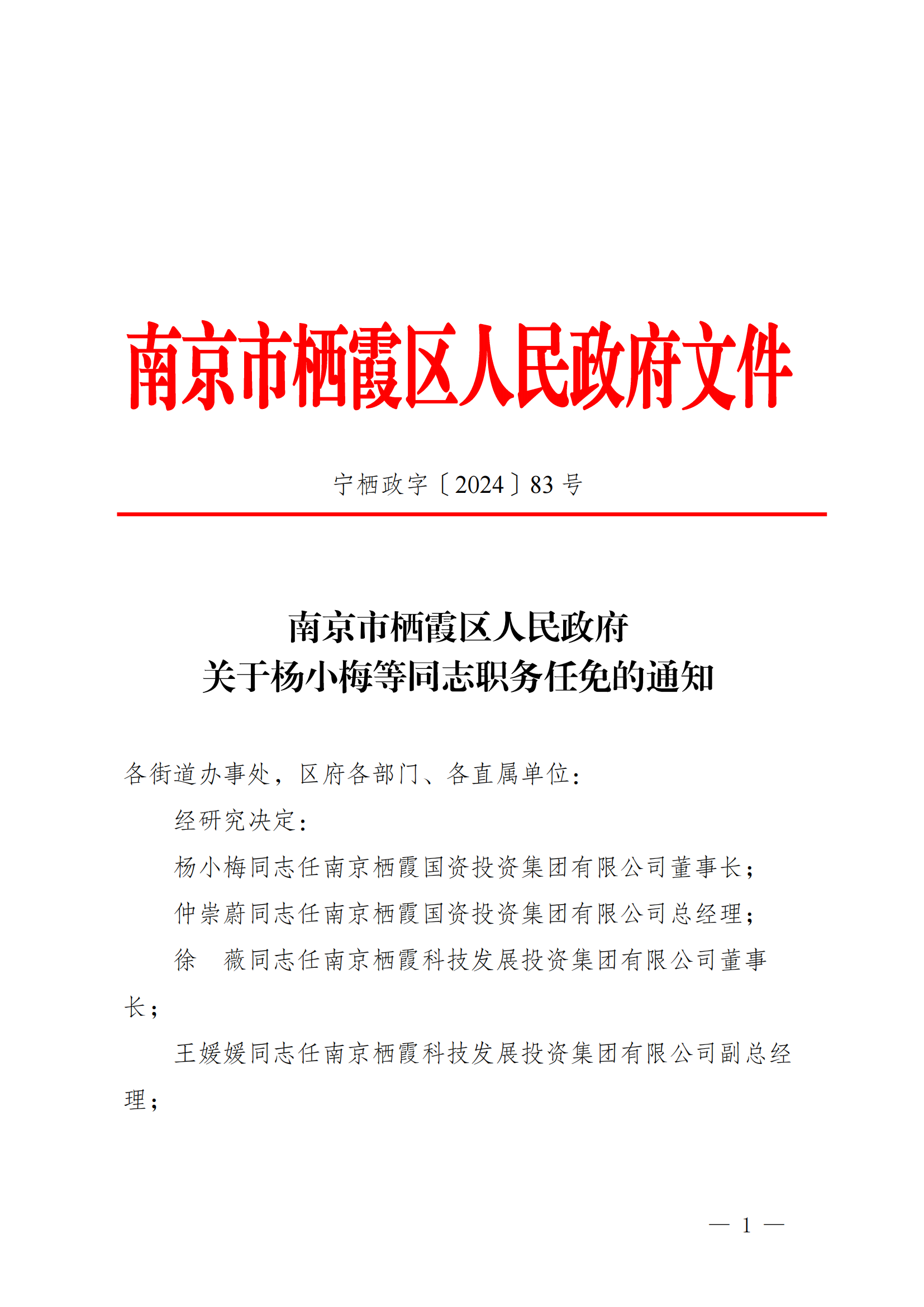 寧棲政字〔2024〕83號(hào) 南京市棲霞區(qū)人民政府關(guān)于楊小梅等同志職務(wù)任免的通知