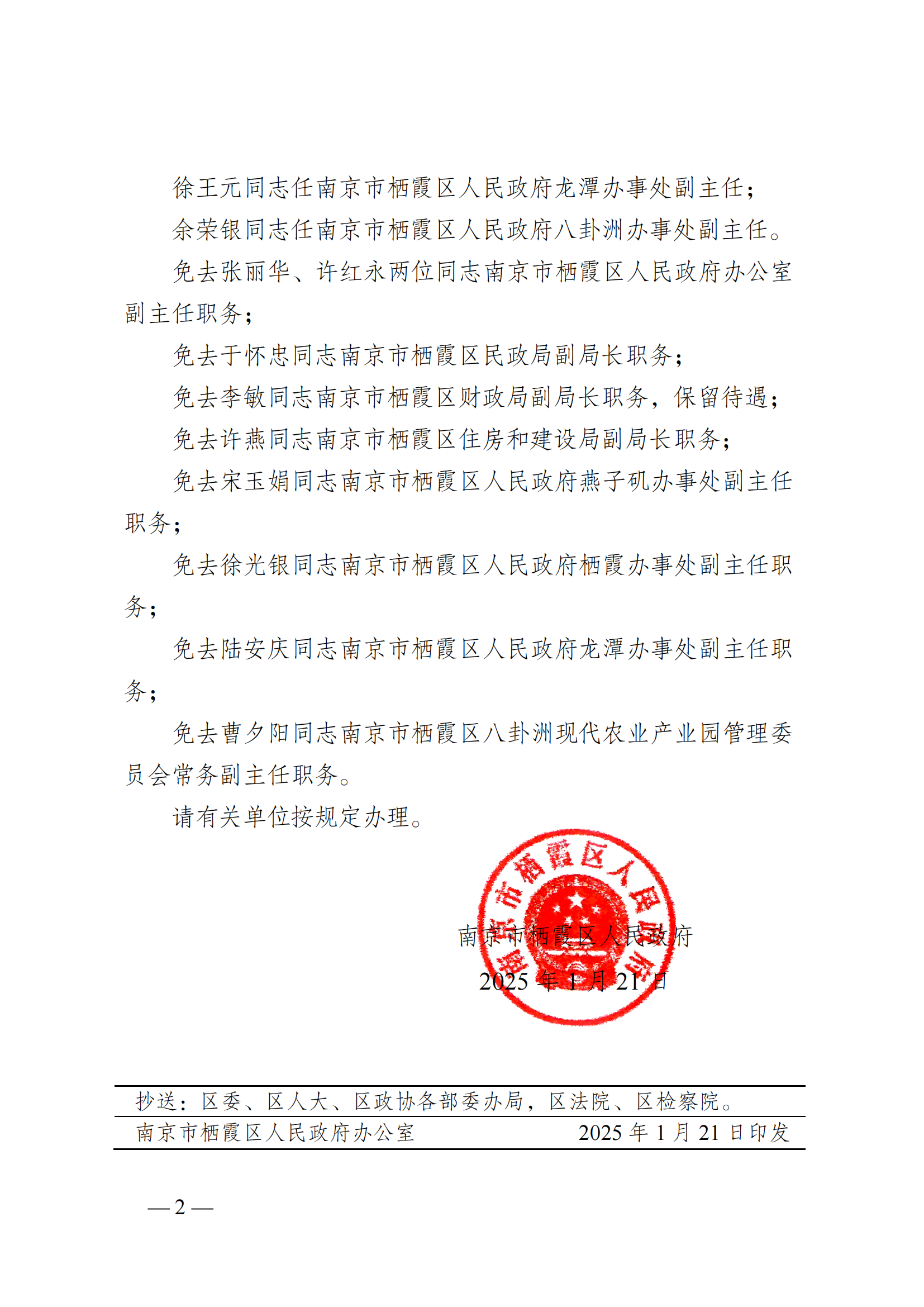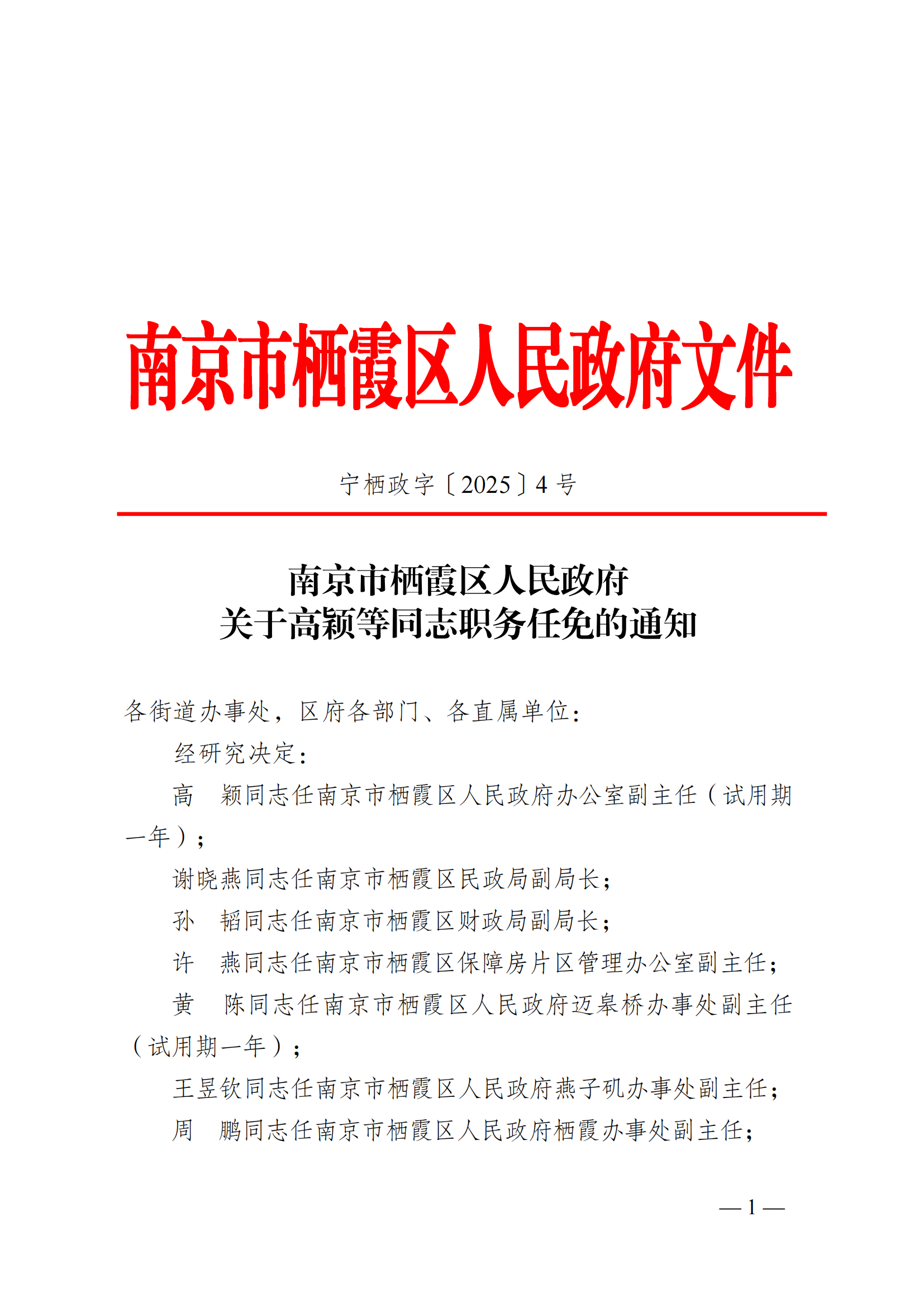 南京市棲霞區(qū)人民政府關(guān)于高穎等同志職務(wù)任免的通知
