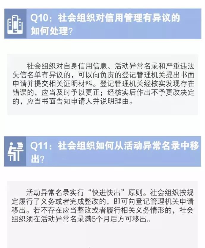 被列入嚴重違法失信名單的社會組織將被列入重點監督管理對象。同時,登記管理機關可對其采取不給予資金資助、不購買服務、不授予相關榮譽稱號等懲戒措施。