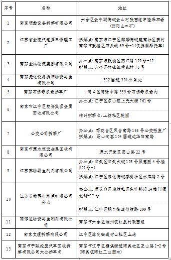 車輛報(bào)廢拆解點(diǎn)企業(yè)名錄: