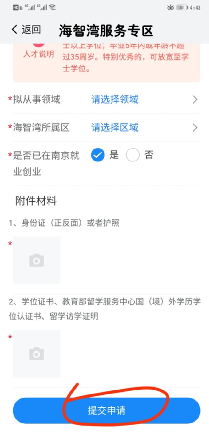 三、點(diǎn)擊海智灣服務(wù)專(zhuān)區(qū),點(diǎn)申請(qǐng)入口