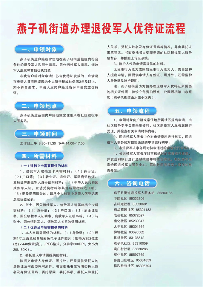 【圖解】燕子磯街道辦理退役軍人優待證流程