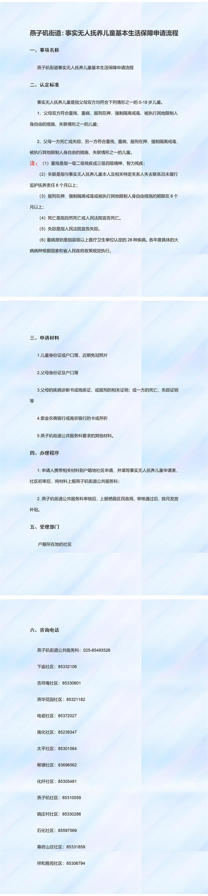 燕子磯街道事實無人撫養兒童基本生活保障申請流程