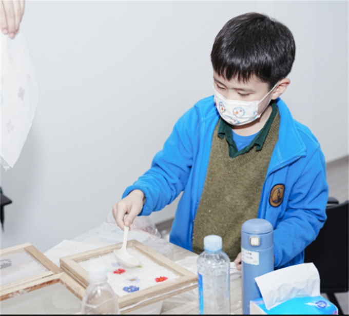 手工活動正式開始。非遺小課堂,是2023年南京棲霞區保障房辦和邁皋橋街道在瑞豐園社區落地的一個重要項目,主要面向轄區外來務工人員子女及生活困難兒童,共計20組家庭參與其中。本次開課內容為四大發明之古法造紙。在課堂上,老師從造紙術的起源、古法造紙的原材料和制作工藝的發展等方面,向大家闡述了造紙術的作用、價值和巨大影響力。孩子們看到一張普普通通的紙在制作過程中竟然有這么多工序,感到興奮又驚奇,當他們自己動手試驗時,小心翼翼地從紙漿中抄出一張張手工紙,把自己喜歡的鮮花、顏料點綴在紙漿上,待紙張干透就是一張精美的手工紙。孩子們親手觸摸紙張在兩千多年悠悠歲月中的“溫度”,感受其承載的厚重內涵,文化自信油然而生。參與的學生們個個興趣高漲,紛紛表示:我們會珍惜這次學習機會,認真學習中國傳統文化,并向身邊的同學朋友宣揚推廣,做一名合格的“小小傳承人”