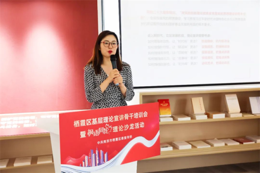 開始“楓語同論”理論沙龍活動,圍繞“如何將棲霞區基層理論宣講做深做實”這一主題,各街道宣傳委員、基層理論宣講骨干代表共同“頭腦風暴”,開展熱烈討論,燕子磯街道代表表示要做好基層宣講要立大格局,既要把握國家大事也要知悉民生要事;要練真本領,要會說群眾話,會走走群眾路,在實踐中求真知,在群眾中取真經;要做有心人,對上級政策要把握精準,對群眾需求保持敏感,做好理論知識、思想觀念的積累及轉化。